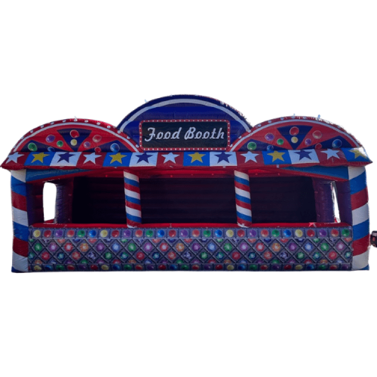 Bring the fun of the midway to your event with this vibrant Carnival Booth inflatable! Designed in bold red, white, and blue with classic star accents and a festive “Food Booth” marquee of a "Carnival Booth" marquee, it instantly creates an eye-catching carnival atmosphere.