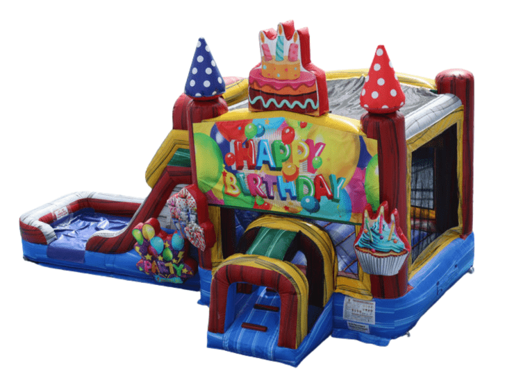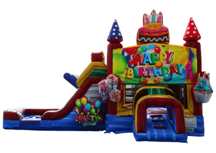 Celebrate your little one's special day with our Happy Birthday Combo! This vibrant and playful inflatable is perfect for creating an unforgettable party experience. Featuring a spacious bounce area, kids can jump, bounce, and have a blast with their friends. The colorful and eye-catching design, complete with a "Happy Birthday" message, adds a festive touch to any celebration. That's not all - this combo unit also includes a dual lane slide! Kids can climb up and slide down, adding an extra element of excitement to the fun-filled day. The slide is designed with safety in mind, ensuring that children can enjoy endless hours of entertainment without any worries. Whether you're hosting a backyard birthday party, a community event, or a school carnival, our Happy Birthday Combo is a must-have addition. Watch as the little ones' faces light up with joy and laughter as they explore this inflatable wonderland.